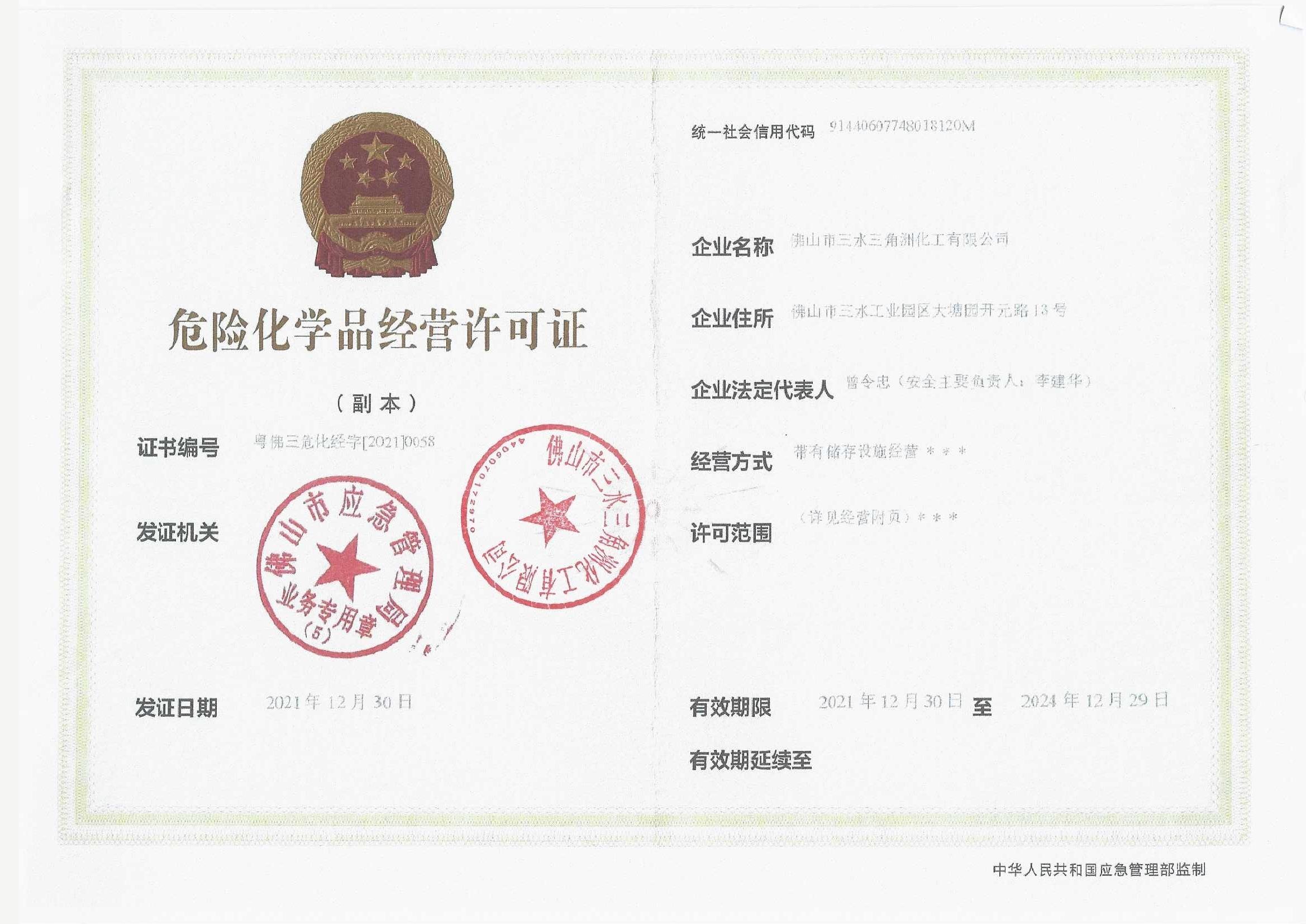Hazardous chemicals business license